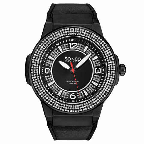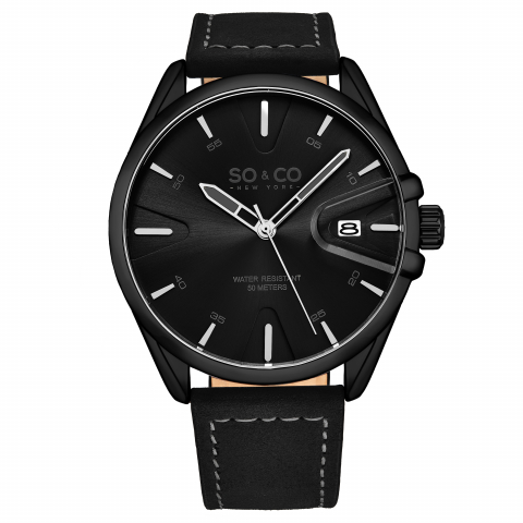 Black/Leather Black Dial Black Case,