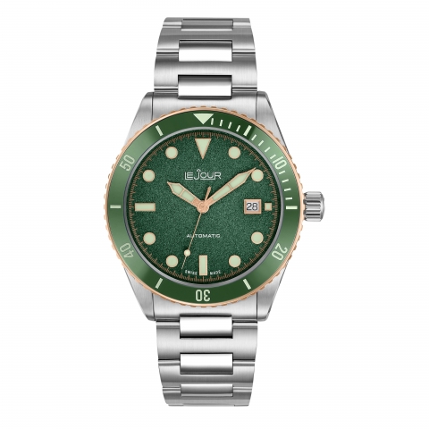 Gevril Steel and Black PVD Black Dial Luminous Hands Swiss Made Automatic Diver Green Watch