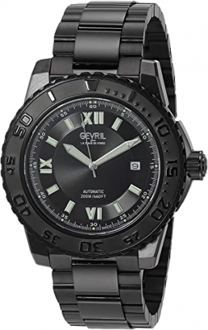 Gevril Black PVD Black Dial Luminous Hands Swiss Made Automatic Bracelet Date Watch