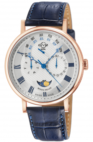 GV2 Swiss Quartz, IPRG Case, White Dial, Blue Italian Leather Strap