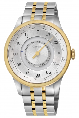 Gevril Men's Avenue of America's Modified Custom Sellita SW220-1, Swiss Automatic,IPYG Case, Silver/Gold Dial, Day-Date