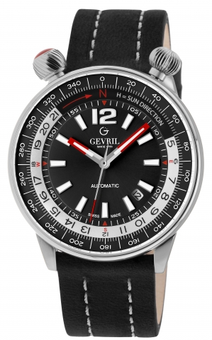 Gevril Men's Mulberry SS Case,SS Bezel, Black Dial with embossed textured, Black Handmade Italian Leather Strap