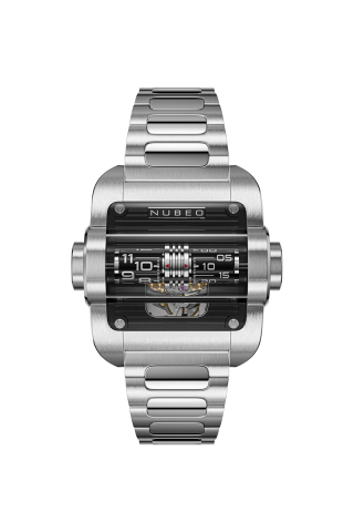 Swiss Automatic Movement, Black Embossed Dial, Silver Counter 316L SS Bracelet