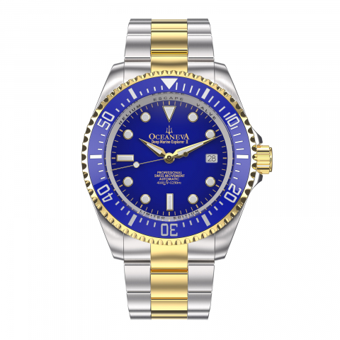 316L Case, Blue Sunray Dial, Ceramic Bezel, Two toned SS/IPYG Bracelet