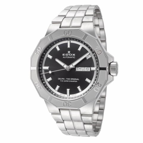 Black dial, stainless steel bracelet