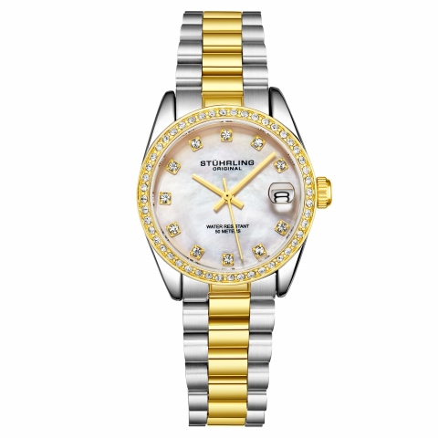 PIETRA Ladies Quartz Mother of Pearl Dial Watch with Crystal Bezel