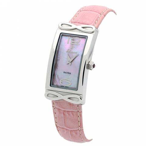 Women's Pink Dial, Stainless Steel Case and Off-White Leather Strap